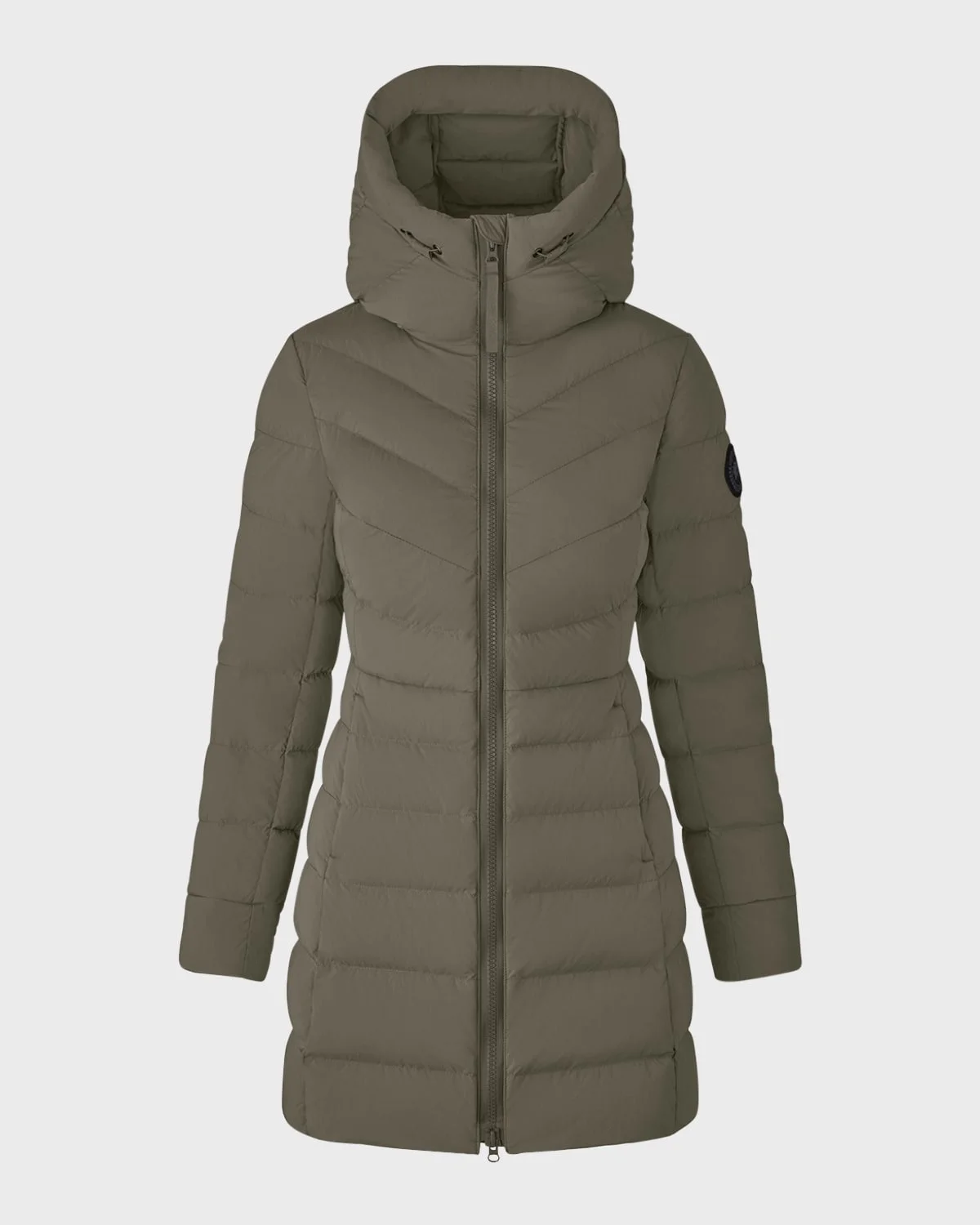 - Canada Goose "Clair" puffer coat - Fixed snorkel hood with hidden cord lock adjuster - Two-way center front zipper for added range of motion and venting - Sueded tricot chin guard adds softness and comfort - Shoulder logo patch - Long sleeves with power stretch cuffs - Interior backpack straps allow the jacket to be carried hands-free over the shoulders - 2 exterior fleece-lined hand warmer pockets with zipper closures - 1 interior security pocket with zipper closure - Hem falls above the knee - Straight fit - Nylon/polyamide/spandex - Lining: Nylon/spandex - Feather/down fill - Machine wash cold - Made in Canada - Size Note: Item runs small, consider ordering a size up. - Model height: 5'10"/177cm.