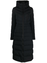 Clair hooded puffer coat Canada Goose demonstrates its impeccable outerwear craftsmanship with the Clair coat, which hails from the brand's Black label. It's made from two-way stretch Aira fabric that adapts to the body's movements and is quilted to evenly distribute the down filling. Functional details – like internal backpack straps and fleece-lined hand-warmer pockets – complete the design. Highlights - Black - Padded design - Quilted - High neck - Classic hood - Front zip fastening - Long sleeves - Logo patch at the sleeve - Two side inset pockets - Calf-length Imported Composition Outer: Polyamide 87%, Elastane 13% Lining: Feather Down 100%, Polyamide 87%, Elastane 13% SIZE & FIT Model measurements Height 5 ft 10 in(1.77 m) Bust/Chest 29.92 in(76 cm) Hips 34.25 in(87 cm) Waist 23.62 in(60 cm) FittingInformation Designed for a slim fit that sits just away from the body offering a close yet comfortable fit Made from a padded stretch fabric, giving it elasticity and a flexible fit This piece fits true to size – take your usual size Measurement SLEEVE LENGTH 25 in(63.5 cm) HIPS 42 in(106.7 cm) LENGTH 45 in(114.3 cm) WAIST 32 in(81.3 cm) BUST 35 in(88.9 cm) Washing instructions Machine Wash