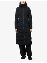 PRODUCT DETAILS - Canada Goose nylon-down coat - 87% polyamide, 13% elastane; filling 90% duck down, 10% duck feather - Zip fastening - Slim fit, funnel neck, drawstring hood, long sleeves, concealed zip pockets at front, quilted and padded, branded hardware, longline length - Dry clean - True to size - Size small: length 46in / 117cm - Model is 5ft 10in/1.78m and wears a size small - Midweight, non-stretch Ref: R04540888