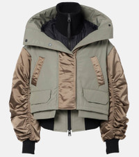 The Claremont bomber jacket from Canada Goose is down-filled to take on cold-weather seasons in style. This standout piece features a two-way zip-and-snap closure, high collar, practical pockets, and ribbed trims. Product Details - Material: 84% polyester, 16% cotton - Care instructions: dry clean - Made in Canada - Designer color name: Taupe Grey/Sagebrush/Black - Item color: green - Material II: 100% polyamide - Filling: 90% down, 10% feathers - Filling II: 100% polyester - Lining: 100% polyamide - Contains non-textile parts of animal origin - Closure: two-way zipped front, snap-buttoned front - Collar: turtleneck - Pockets: welt pockets, flap pockets - Cuff: ribbed - Hem: ribbed - Item number: P01101722 Size & Fit - True to size - Canada Goose standard fit - Designed for a loose fit - Adjustable hem - Elasticated hem - Non-stretchy fabric - Slightly cropped - The model seen in the picture is 178cm-5'10" and wearing a size XS