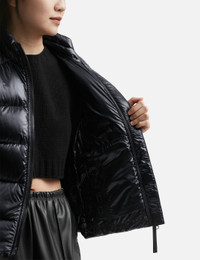 - Canada Goose - Women's Cypress Vest Black Label - Classic fit - Hip length - Two-way zipper closure - Wind-resistant, water-repellent and ultra-lightweight fabric - Down-filled collar - Double-stripe reflective details at rear - Packable into interior left pocket - Embroidered disc logo in monochromic black on chest - Two exterior zipped pockets - One interior pocket - Adjustable hem with interior drawcord - Color: Black - Material: Shell: 100% Polyamide; Fill: 90% Down, 10% Feather - See more Vests and Clothing SIZING - Model wears size XS - Model measures: Height 170cm, Chest 29”/75cm, Waist 22”/57cm, Hip 33”/86cm