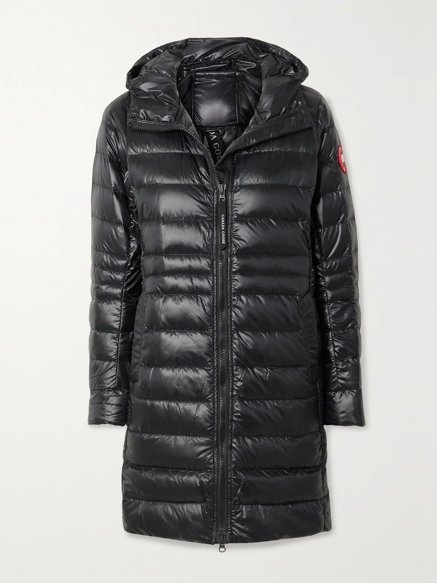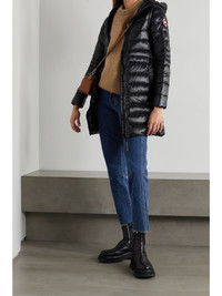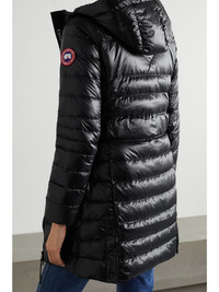 Canada Goose's 'Cypress' jacket folds down into a packable bag, making it an ideal choice for travelling. It's been made in Canada from durable, yet lightweight, quilted shell that's padded with insulating down and treated with a water-repellent finish to protect you from the elements. It has reflective trims and a removable strap so it can be carried hands-free. Size & Fit - Fits true to size, take your normal size - Designed for a slim fit - Internal shoulder straps for an alternative fit - Adjustable tabs at the waist - Quilted, non-stretchy fabric - Model is 177cm/ 5'10" and is wearing a size Small Details & Care - Black shell - Two-way zip fastening through front - 100% nylon; filling: 90% down, 10% feathers (Duck); lining: 100% recycled nylon - Machine wash - Made in Canada