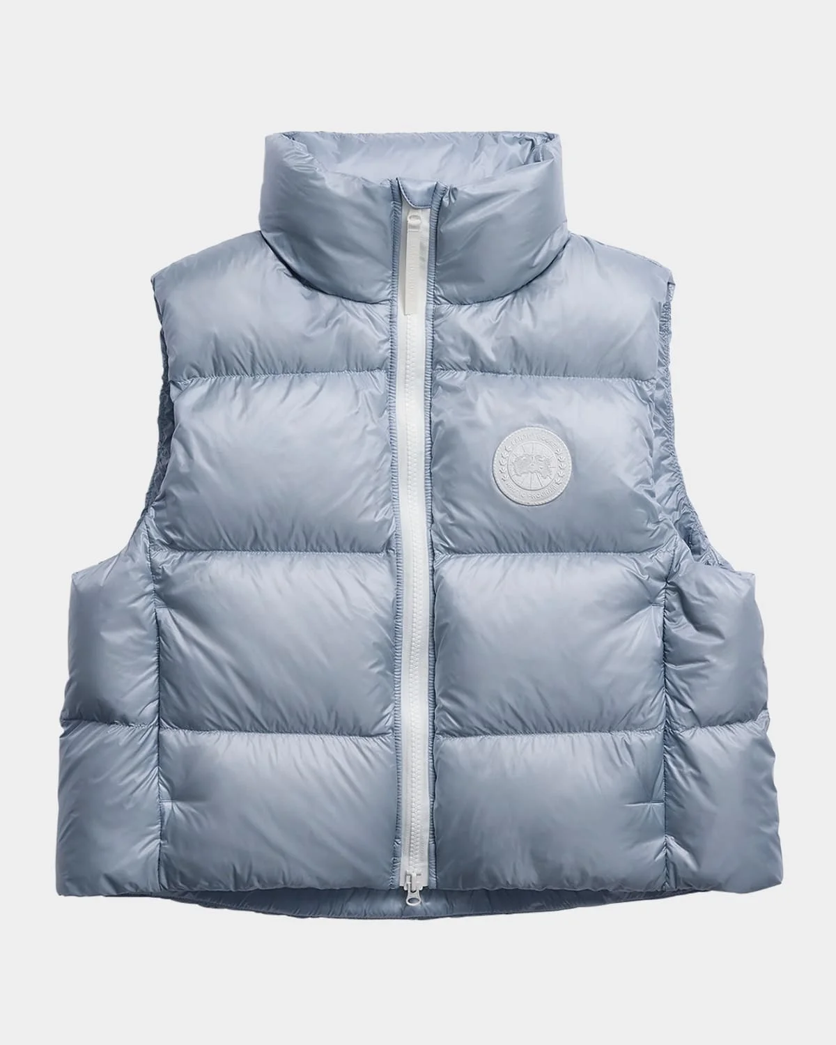 - Canada Goose "Cypress" lightweight quilted puffer vest - Packable into left interior pocket - Stand collar - Sleeveless; chest logo patch - On-seam side zip pockets; one interior pocket - Classic fit - Adjustable drawcord hem - Zip-front - Nylon/polyamide - Fill: Down/feather - Lining: Recycled nylon - Machine wash cold - Made in Canada