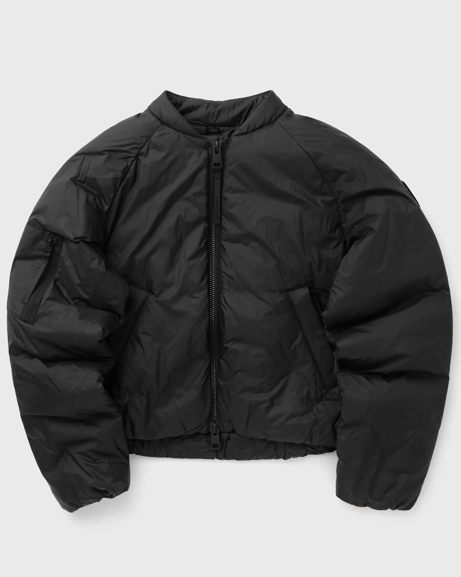 The Elba bomber jacket by Canada Goose impresses with its multi-layered, quilted construction and clean, minimalist look. It is made from Lumina, a soft, ultra-lightweight fabric with a subtle sheen. Adjustable cuffs and a drawstring at the balloon hem ensure a modern, customizable silhouette. - Can be stowed in the left inner pocket - Two-way zipper - Elastic hem with internal drawstring - Internal backpack straps for hands-free carrying - Two outer pockets: zippered hand pockets Article number: 2758WT-9061 Gender: women Color: BLACK - NOIR Material: 100% Polyamide