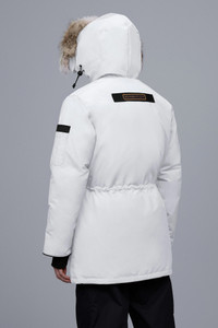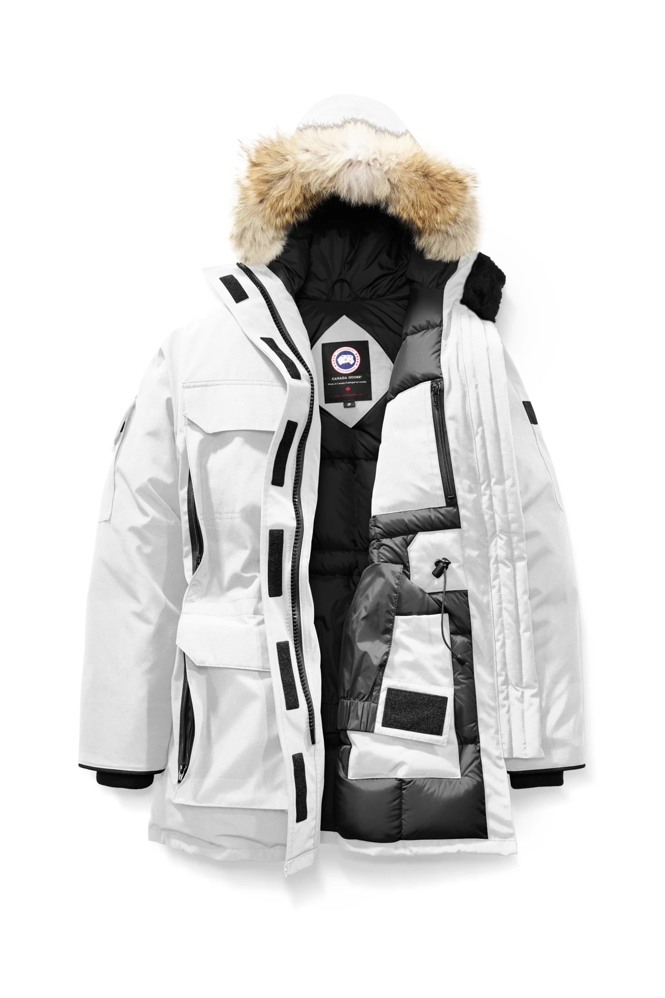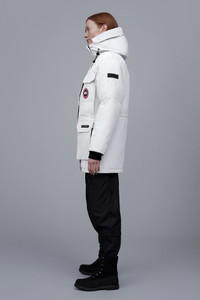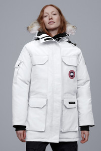The Expedition is the original extreme weather parka, developed for scientists working in McMurdo Station, Antarctica. Whether your next journey is through a frozen urban jungle or across uncharted ice fields, with the Canada Goose Expedition Parka you get performance that is proven at the South Pole each year by the National Science Foundation division of Polar Research. FEATURES - Adjustable down-filled hood adds warmth and element protection. Removable fur ruff with a shaping wire stands up to harsh winds - Chin guard is lined with high-pile fleece for added warmth and comfort - Interior backpack straps allow jacket to be carried hands-free over the shoulders - Webbing grab strap at upper back with 'Expedition' emblem patch - Waist features interior drawcord to customize fit and retain warmth - Recessed rib-knit cuffs add comfort and lock in heat - Hide-away nylon elasticized snow skirt for added protection - Placket with Velcro® closures over 2-way zipper that unzips from the bottom for added range of motion or ventilation. Storm flap underneath zipper adds a layer of protection - 6 exterior pockets: 4 double-entry pockets on front body with top flap and Velcro®closures, side entry has zipper closures. Utility pocket on left sleeve, utility pocket on right sleeve with top flap and Velcro® closure