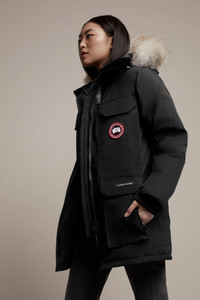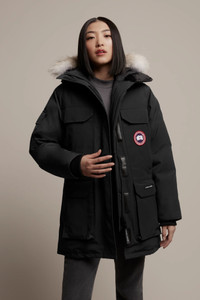 The Expedition is the original extreme weather parka, developed for scientists working in McMurdo Station, Antarctica. Whether your next journey is through a frozen urban jungle or across uncharted ice fields, with the Canada Goose Expedition Parka you get performance that is proven at the South Pole each year by the National Science Foundation division of Polar Research. FEATURES - Fusion Fit is designed to deliver ideal fit, comfort and protection for smaller body frames - Adjustable down-filled hood adds warmth and element protection. Removable fur ruff with a shaping wire stands up to harsh winds - Chin guard is lined with high-pile fleece for added warmth and comfort - Interior backpack straps allow jacket to be carried hands-free over the shoulders - Webbing grab strap at upper back with 'Expedition' emblem patch - Waist features interior drawcord to customize fit and retain warmth - Recessed rib-knit cuffs add comfort and lock in heat - Hide-away nylon elasticized snow skirt for added protection - Placket with Velcro® closures over 2-way zipper that unzips from the bottom for added range of motion or ventilation. Storm flap underneath zipper adds a layer of protection - 2 interior pockets: security pocket with zipper closure, drop-in pocket