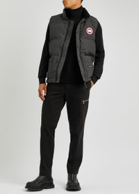 Style Notes Canada Goose's Freestyle gilet is a signature of the label, prized for its sleek appearance and high-performance qualities. Made from durable Artic-Tech shell, this sleeveless high-neck style features the iconic logo plaque and is quilted with duck down for maximum insulation. Info & Care Canada Goose Arctic-Tech shell gilet; Canada Goose Thermal Index 1 (lightweight) Designed for temperatures between 5°C and -5°C Water repellent, quilted, fleece-lined high-neck, embroidered designer patch applique, four front patch pockets, two side slant pockets, designer plaque, curved longer back hem, fully lined Concealed zip and press-stud fastenings through front 84% polyester, 16% cotton; lining: 100% polyamide; fill: 80% down, 20% feathers (duck) Dry clean; Size & Fit Length shoulder to hem: front: 27 inches/ 69cm; back: 29 inches/ 73.5cm Midweight Slim;fit Model is 6'1"/ 185cm, chest size 38 inches and wears a size medium;