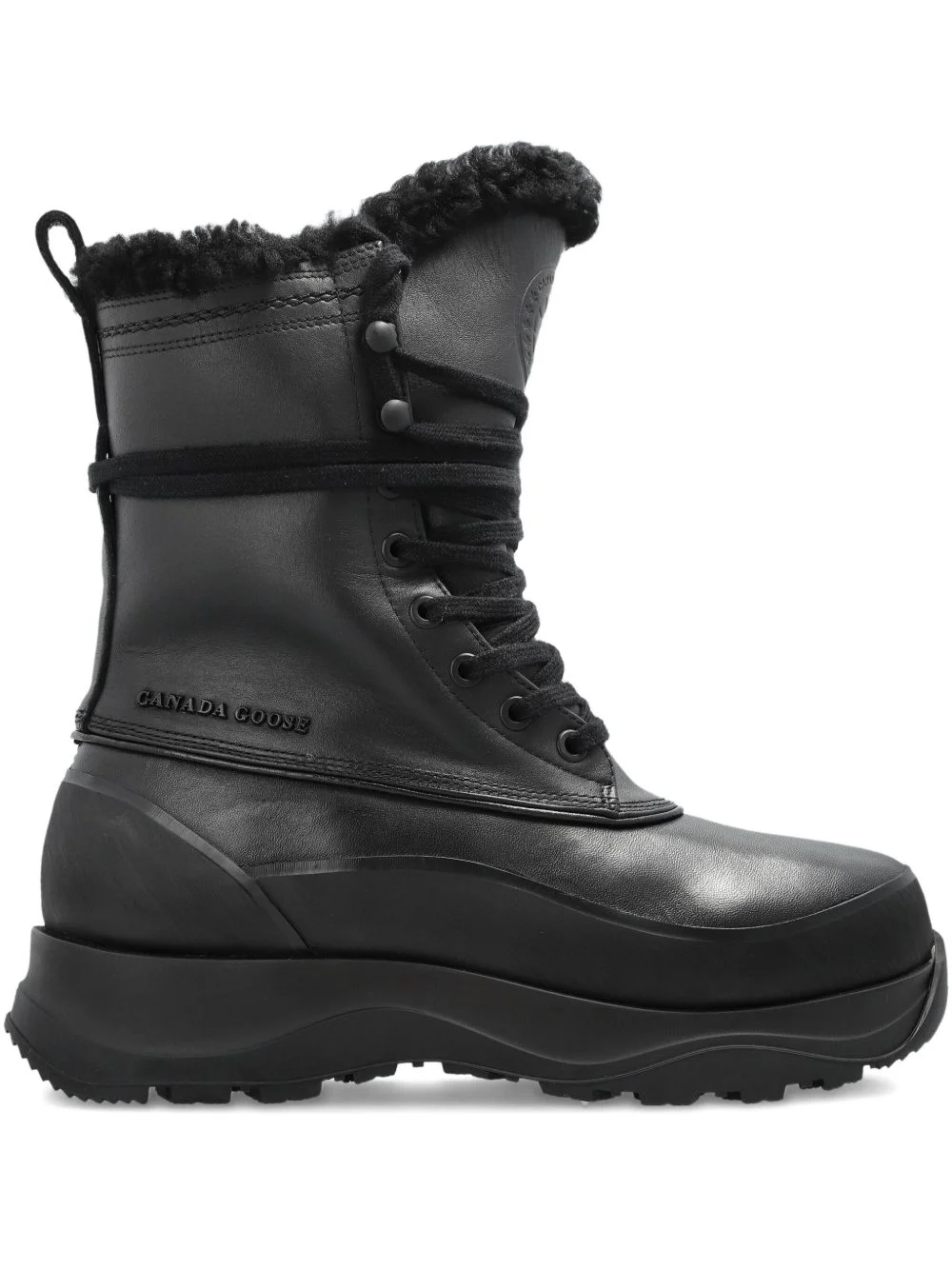 fur-trim lace-up boots Highlights - Black - Fur trim - Lace-up fastening - Pull tab at the rear - Round toe - Rubber sole Imported Composition Outer: Calf Leather 100% Lining: Fabric 100% Sole: Rubber 100%