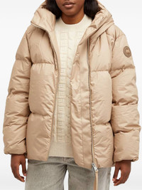 hooded puffer jacket Highlights - Beige - Quilted design - Hooded neckline - Zip fastening - Logo patch Imported Composition Lining: Down 90%, Feather 10% Outer: Pima Cotton 100% Washing instructions Read Manufacturer Guidelines