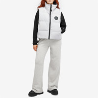 For taking on whatever the day has to throw at you, the Canada Goose Grandview Cropped Vest has a modern silhouette. Crafted using recycled Organic Arctic Tech® for maximum performance, a cropped fit combines functionality with effortless style. - 85% Recycled Polyester, 15% Organic Cotton - Funnel Neck - Snap Button Closure - Side Pockets