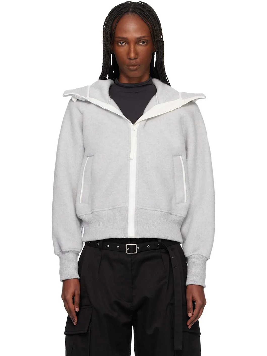 Recycled wool-blend melton bomber jacket. · Bungee-style drawstring at hood · Funnel neck · Zip closure · Welt pockets at front · Rib-knit hem and cuffs · Raglan sleeves · Embroidered logo patch at sleeve Part of the White Label collection. Supplier color: Silverbirch heather Body: 60% recycled wool, 16% lyocell, 13% polyester, 8% polyamide, 3% other fibers. Trim: 66% recycled wool, 19% lyocell, 10% polyamide, 4% other fibers, 1% elastane. Made in Canada 261014F097002