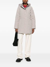 logo-patch hooded coat Highlights - Taupe - Fixed hood - Ribbed cuffs - Two-way zip fastening - Two exterior pockets Imported Composition Polyester 84%, Cotton 16% SIZE & FIT Model measurements Height 5 ft 8 in(1.73 m) Bust/Chest 29.92 in(76 cm) Hips 33.07 in(84 cm) Waist 23.22 in(59 cm) Washing instructions Read Manufacturer Guidelines
