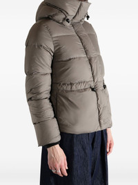 hooded puffer jacket Highlights - Taupe grey - Drawstring waist - High neck - Logo patch - Concealed front fastening - Quilted Imported Composition Fabric 100% Washing instructions Read Manufacturer Guidelines