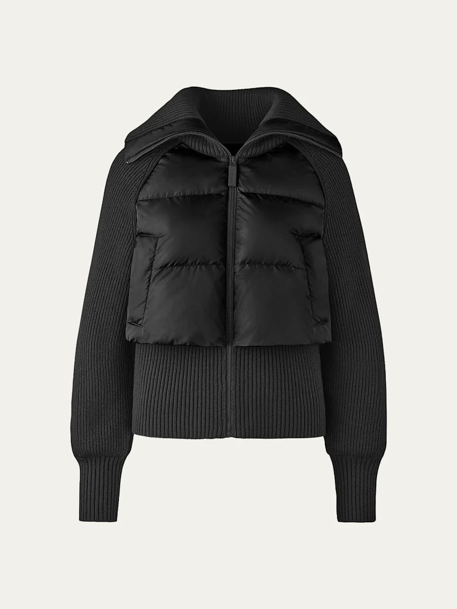 Crafted in merino wool for breathability, the "HyBridge® Astoria" jacket by Canada Goose features downfilled paneling for added warmth. Versatile zipped collar Long raglan sleeves with ribknit cuffs Side slip pockets Classic fit Ribknit hem Zipfront Merino wool Dry clean only Imported