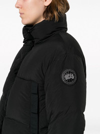 Junction cropped puffer jacket Highlights - Black - Duck down - Padded design - Logo patch at the sleeve - Funnel neck - Front two-way zip fastening - Long sleeves - Ribbed cuffs - Two side welt pockets - Drawstring hem - Cropped Imported Composition Outer: Polyamide 100% Lining: Polyester 100%, Duck Down 90%, Duck Feathers 10% SIZE & FIT Model measurements Height 5 ft 10 in(1.79 m) Bust/Chest 32.67 in(83 cm) Hips 34.25 in(87 cm) Waist 24.4 in(62 cm) Measurement SLEEVE LENGTH 24.01 in(61 cm) LENGTH 22.99 in(58.4 cm) WAIST 45.98 in(116.8 cm) BUST 44.01 in(111.8 cm) FittingInformation Designed to be unstructured, offering a loose fit throughout The internal drawstring at the hem allows for fitted preferences Made from a padded non-stretch fabric, giving it no natural elasticity This piece fits true to size – take your usual size Washing instructions Machine Wash
