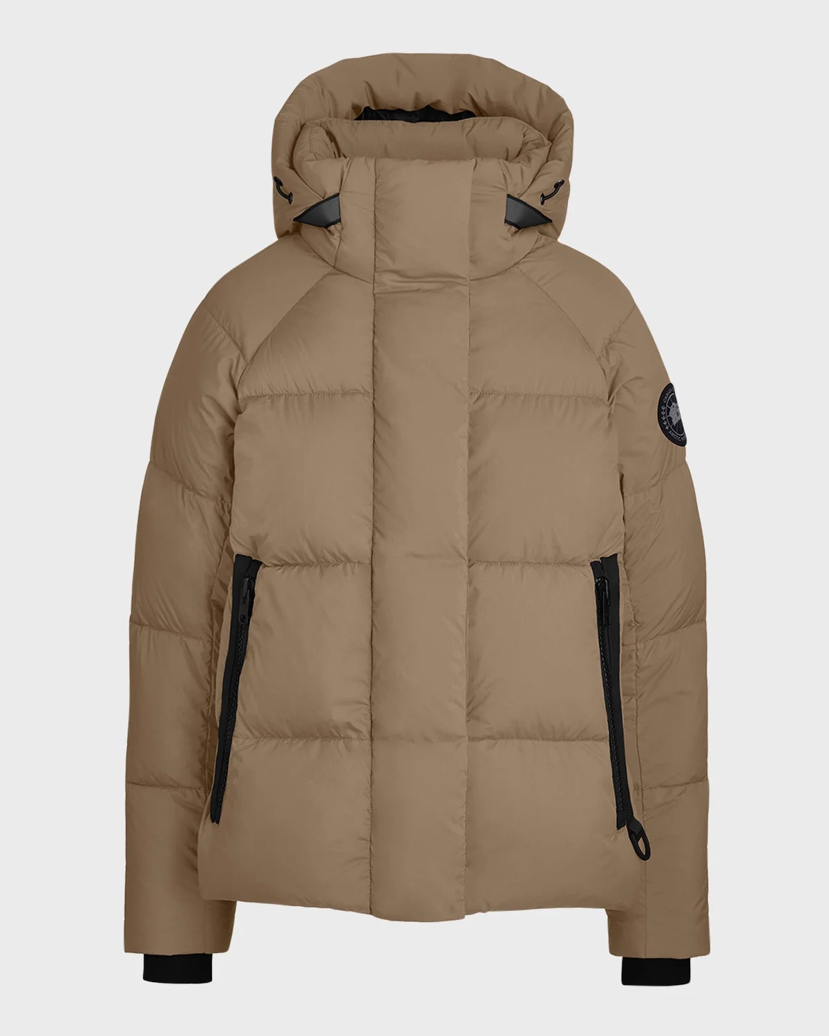 Canada Goose "Junction" lightweight puffer jacket crafted using ultrasoft water and windresistant EnduraLuxe fabric Highabrasion areas are reinforced with CORDURA® fabric for added durability Reflective webbing along the back of the hood and a reflective strip around the collar adds visibility in low light Removable premium thermal hood is adjustable in two ways Downfilled placket with hidden snap closures over a twoway zipper to keep the elements out Long sleeves; ribknit cuffs add comfort and lock in heat Logo patch at left sleeve Interior backpack straps allow the jacket to be carried handsfree over the shoulders DRing on the wearer's left pocket can be used to attach gloves or other necessities Three exterior pockets: fleecelined hand warmer pockets with twoway zipper closures and a security pocket with zipper closure Two interior mesh dropin pockets Hem features an interior drawcord to keep cold winds out Nylon/polyamide Fully lined Fill: Down/Feather Do not iron, machine wash cold, wash inside out Made in Canada
