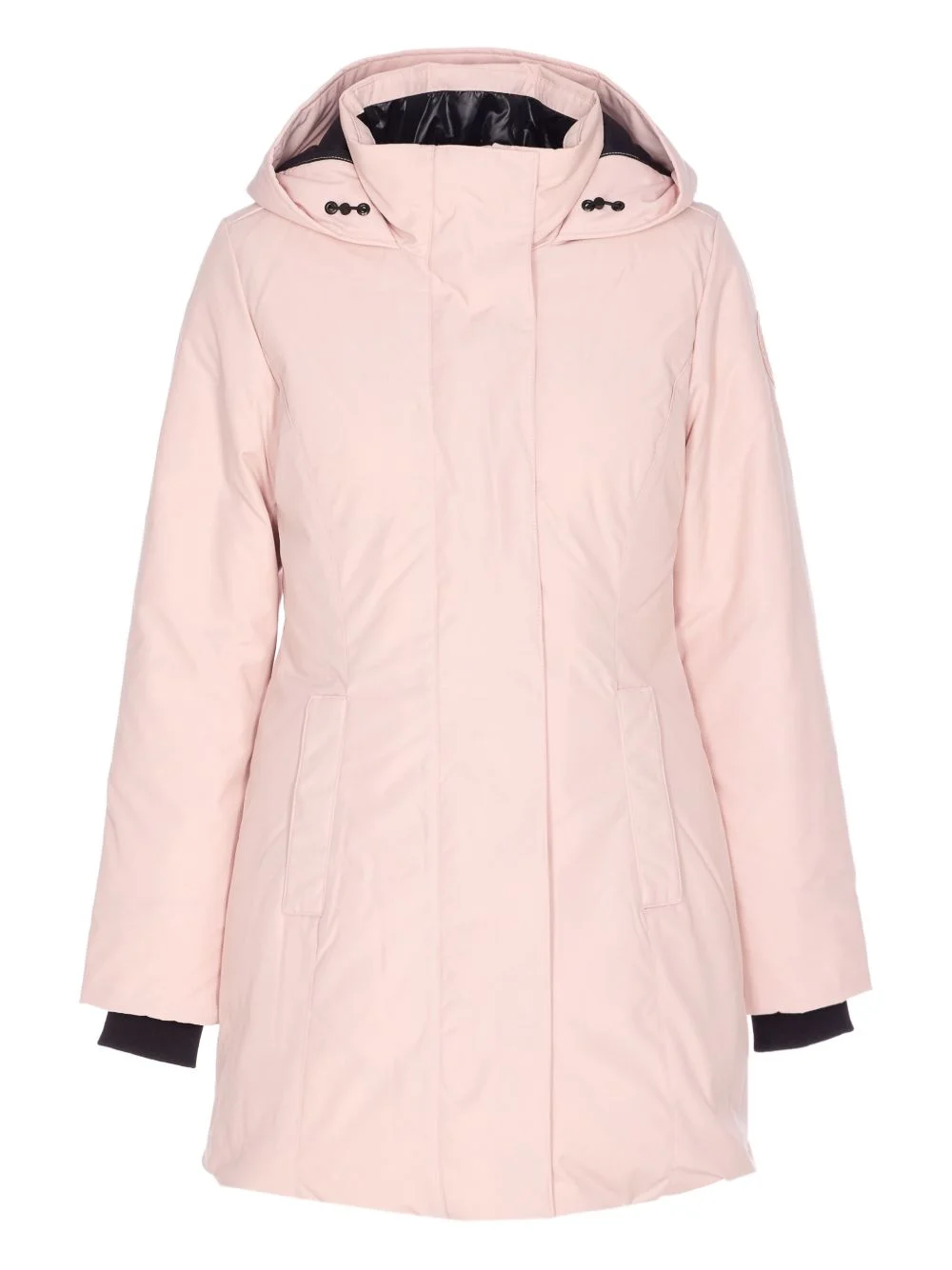 hooded padded parka Highlights - Light pink - Zip and button fastening - Patch logo - Attached hood Imported Composition Polyamide 100%, Polyester 84%, Cotton 16% Washing instructions Read Manufacturer Guidelines
