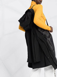 logo patch hooded jacket black logo patch at the sleeve classic hood concealed front fastening long sleeves straight hem Imported Composition Outer: Polyester 100% Lining: Polyester 100% SIZE & FIT Model measurements Height 5 ft 10 in(1.77 m) Bust/Chest 32.28 in(82 cm) Hips 35.03 in(89 cm) Waist 25.19 in(64 cm) Measurement LENGTH 34.25 in(87 cm) WAIST 37.79 in(96 cm) BUST 38.58 in(98 cm) FittingInformation This piece fits true to size. We recommend you get your regular size Designed for a loose fit with a close fit at the waist Made with a mid-weight non-stretch fabric Washing instructions Machine Wash