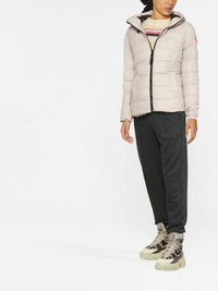 logo-patch puffer jacket light beige duck feather padded design logo patch at the sleeve drawstring hood front zip fastening long sleeves two side slit pockets Imported Composition Outer: Polyamide 100% Lining: Polyester 100%, Down 90%, Feather 10% SIZE & FIT Measurement SLEEVE LENGTH 24.8 in(63 cm) LENGTH 24.8 in(63 cm) WAIST 34.64 in(88 cm) BUST 38.58 in(98 cm) Washing instructions Machine Wash
