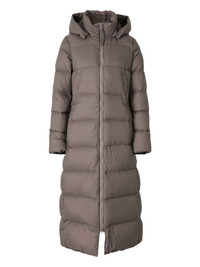 Mystique puffer coat Highlights - Taupe grey - High collar - Adjustable hood - Front zip fastening - Side pockets - Logo patch - Adjustable cuffs Imported Composition Outer: Recycled Polyamide 100% Down 90%, Feather 10% Washing instructions Machine Wash