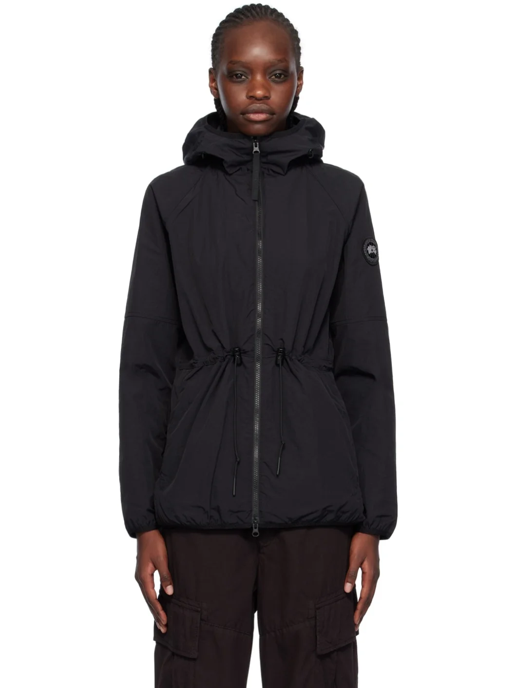 Lightweight nylon taffeta jacket. · Bungee-style drawstring at hood and waist · Elasticized trim at hood, hem, and cuffs · Two-way zip closure · Zip pockets · Raglan sleeves · Embroidered logo patch at sleeve · Partial mesh lining Part of the Black Label collection. Supplier color: Black Body: 100% polyamide. Lining: 100% polyester. Made in Portugal 232014F063005