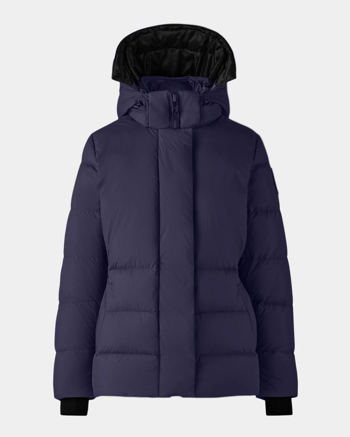 Crafted from recycled EnduraLuxe with a matte finish, the "Lyndale" puffer jacket by Canada Goose offers a classic silhouette with a lightweight feel. Cold weather protection down to 4°F. Adjustable removable hood; twoway zipfront Long sleeves Signature logo patch on the left sleeve Adjustable interior drawcord waist Side welt pockets with snap closure Classic fit Hem falls to the hip Nylon/polyamide Fill: Down/feather Lining: Nylon Machine wash cold, inside out Made in Canada