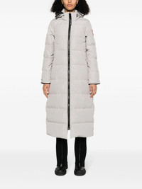 Mystique hooded parka coat Engineered for extreme cold weather, Canada Goose's Mystique parka coat is made with water-repellent Arctic Tech® fabric and padded with responsibly sourced feather down for warmth and insulation. The brand's iconic logo patch adorns the sleeve. Highlights - Grey - Down-feather filling - Padded design - Quilted - Logo patch at the sleeve - Detachable drawstring hood - Funnel neck - Front zip fastening - Long sleeves - Internal shoulder straps - Two press-stud fastening side pockets - Internal mesh patch pockets - Internal zip-fastening pocket - Straight hem - Long length - Full lining - Water-repellent Imported Composition Lining: Polyamide 100%, Feather Down 100% Outer: Polyester 84%, Cotton 16% SIZE & FIT Model measurements Height 5 ft 10 in(1.78 m) Bust/Chest 33.07 in(84 cm) Hips 36.61 in(93 cm) Waist 24.8 in(63 cm) Measurement CHEST 37.79 in(96 cm) SLEEVE LENGTH 24.8 in(63 cm) LENGTH 47.63 in(121 cm) FittingInformation Designed for a slim fit that sits just away from the body offering a close yet comfortable fit Made from a padded non-stretch fabric, giving it no natural elasticity This piece fits large – take one size down Washing instructions Dry Clean Only