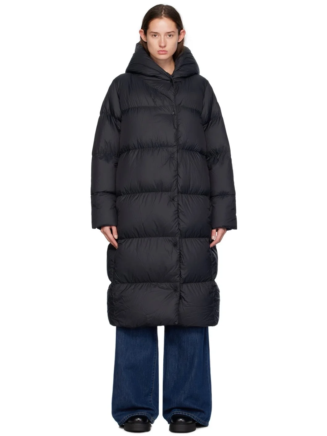 Down-filled recycled nylon Lumina taffeta parka. Lightweight, water-repellent, and wind-resistant. · Two-way zip closure with offset press-stud placket · Zip seam pockets · Logo patch at sleeve · Inset rib knit cuffs · Detachable logo-woven shoulder straps at interior · Fully lined · Logo-engraved black hardware Supplier color: Black Fill: 90% duck down, 10% duck feather. Body: 100% recycled polyamide. Lining: 100% recycled polyamide. Made in Canada 242014F061021