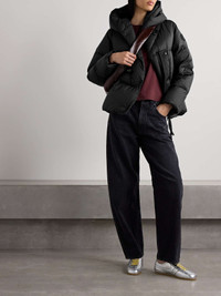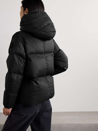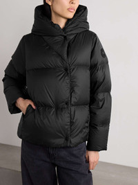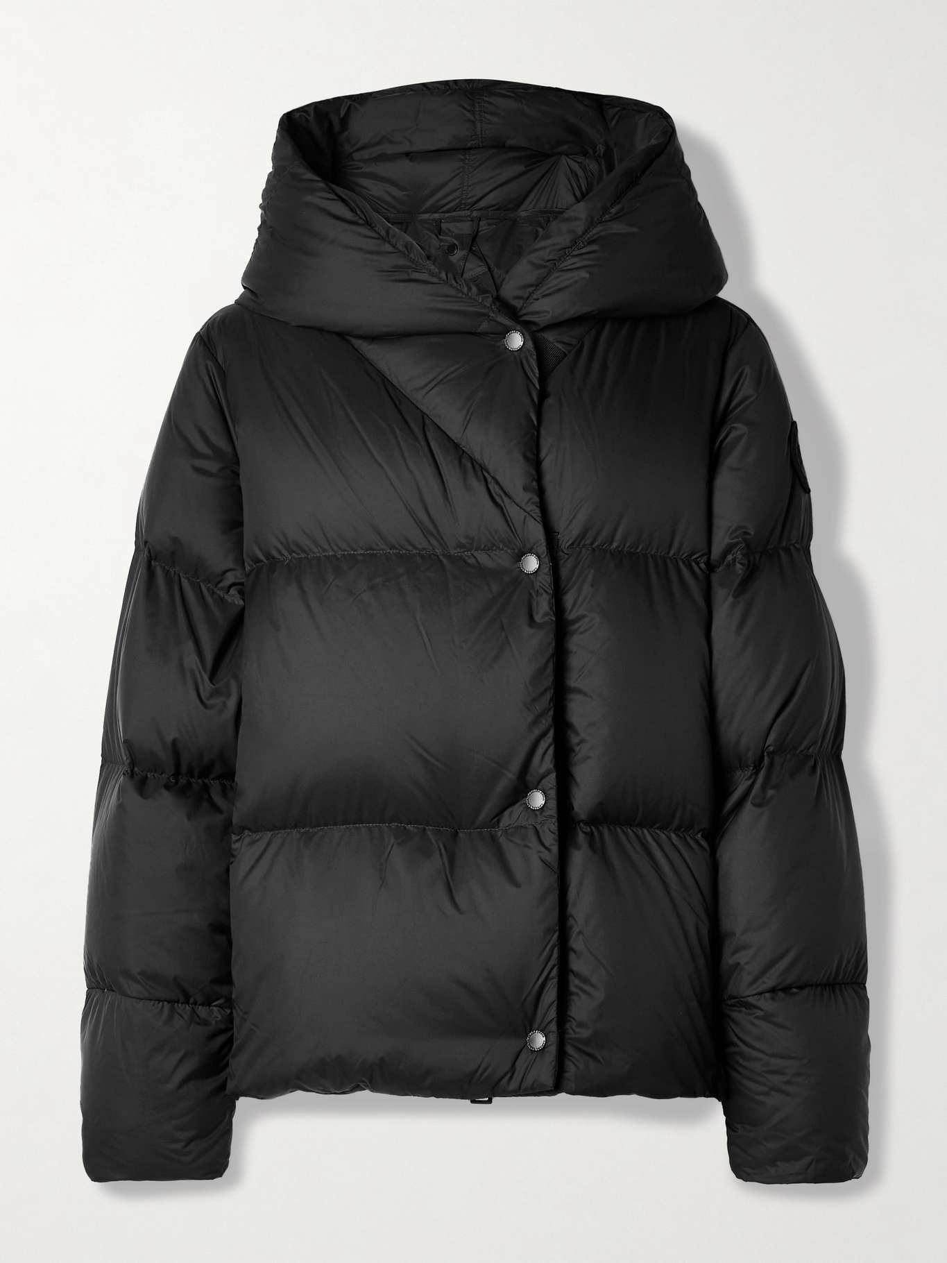 EDITORS'NOTES Canada Goose's ‘Rhoda' jacket is packed with down and feathers that create plenty of insulation and a puffy, voluminous shape. It's made from lightweight yet durable quilted shell with a water-repellant and wind-resistant finish. The generous hood and asymmetric placket offer extra protection. SIZE & FIT Model measurements: - Fits true to size, take your normal size - Designed for a slightly loose fit - Quilted, non-stretchy fabric - Model is 180cm/ 5’11” and is wearing a size Small - Bust: 78.7cm/ 31" - Waist: 62.2cm/ 24.5" - Hip: 86.4cm/ 34" DETAILS & CARE - Black shell - Buttons and concealed zip fastening at front - 100% polyamide; filling: 90% down, 10% feather (Duck) - Machine wash