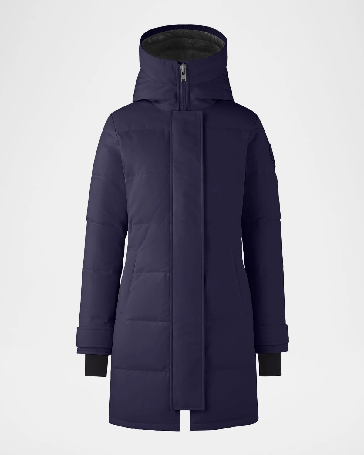 Crafted with functionality and style in mind, the "Shelburne" parka by Canada Goose features interior backpack straps for handsfree carrying and a removable zip guard along the hood for versatile styling. Waterrepellent and windresistant Cold weather protection down to 4°F. Hooded neckline; lined chin guard Long sleeves with ribknit cuffs and snaps Signature logo patch on the left sleeve Two exterior pockets; three interior pockets Classic fit Back vent with snaps for added movement Twoway zipfront with snap placket Polyester/cotton Fill: Down/feather Lining: Nylon Dry clean Made in Canada