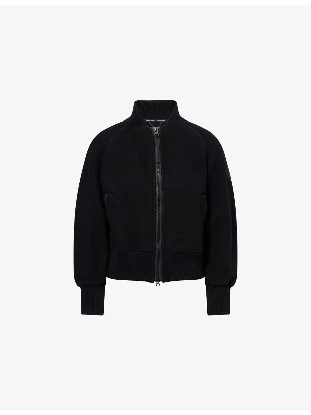 PRODUCT DETAILS - Canada Goose wool-blend jacket - 60% wool, 16% lyocell, 13% polyester, 8% polyamide, 3% other fibres - Zip fastening - Regular fit, ribbed collar, long sleeves, logo patch at sleeve, angled pockets at front, brushed texture, ribbed trims - Dry clean - True to size - Model is 5ft 10in/1.78m and wears a size small - Midweight, non-stretch Ref: R04540901
