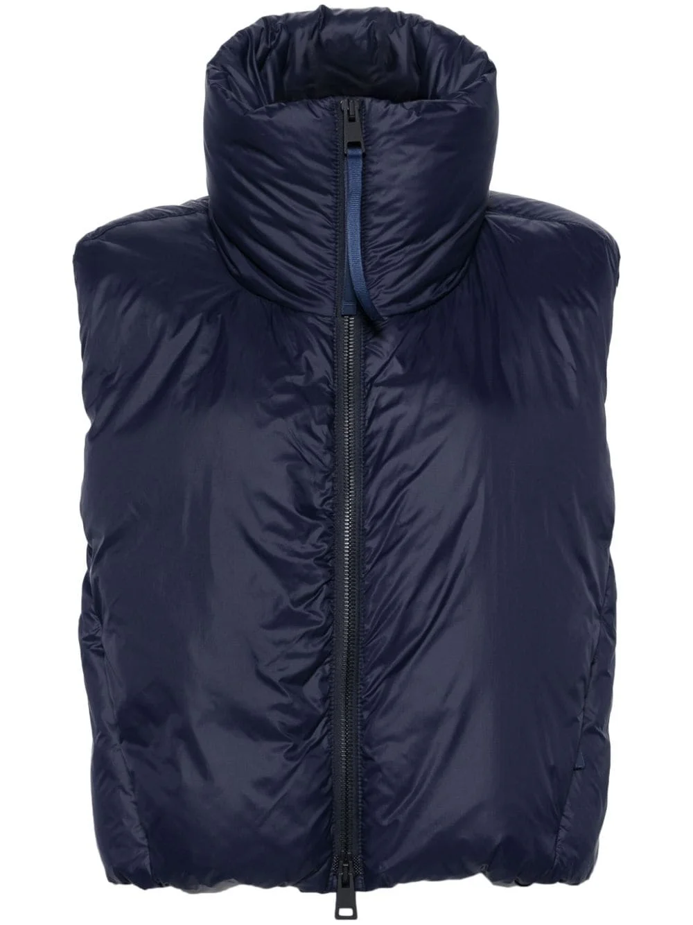 Spessa cropped gilet Highlights - Navy blue - Duck down - Padded design - Funnel neck - Front two-way zip fastening - Sleeveless - Two side zip-fastening pockets - Cropped straight hem - Full lining Imported Composition Outer: Polyamide 100% Lining: Polyamide 100%, Duck Down 100% SIZE & FIT Model measurements Height 5 ft 11 in(1.8 m) Bust/Chest 34.25 in(87 cm) Hips 35.82 in(91 cm) Waist 24.8 in(63 cm) FittingInformation Designed for a relaxed fit, this piece allows for comfort and movement when worn Made from a lightweight non-stretch fabric This piece fits true to size – take your usual size