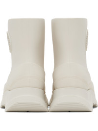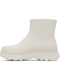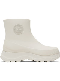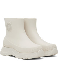 Ankle-high lightweight rubber boots in off-white. · Waterproof · Logo patch at outer side · Removable shearling insole · Moisture-wicking footbed · Treaded rubber sole Supplier color: Snowcap Upper: leather, textile. Sole: rubber. Made in Italy 251014F113001