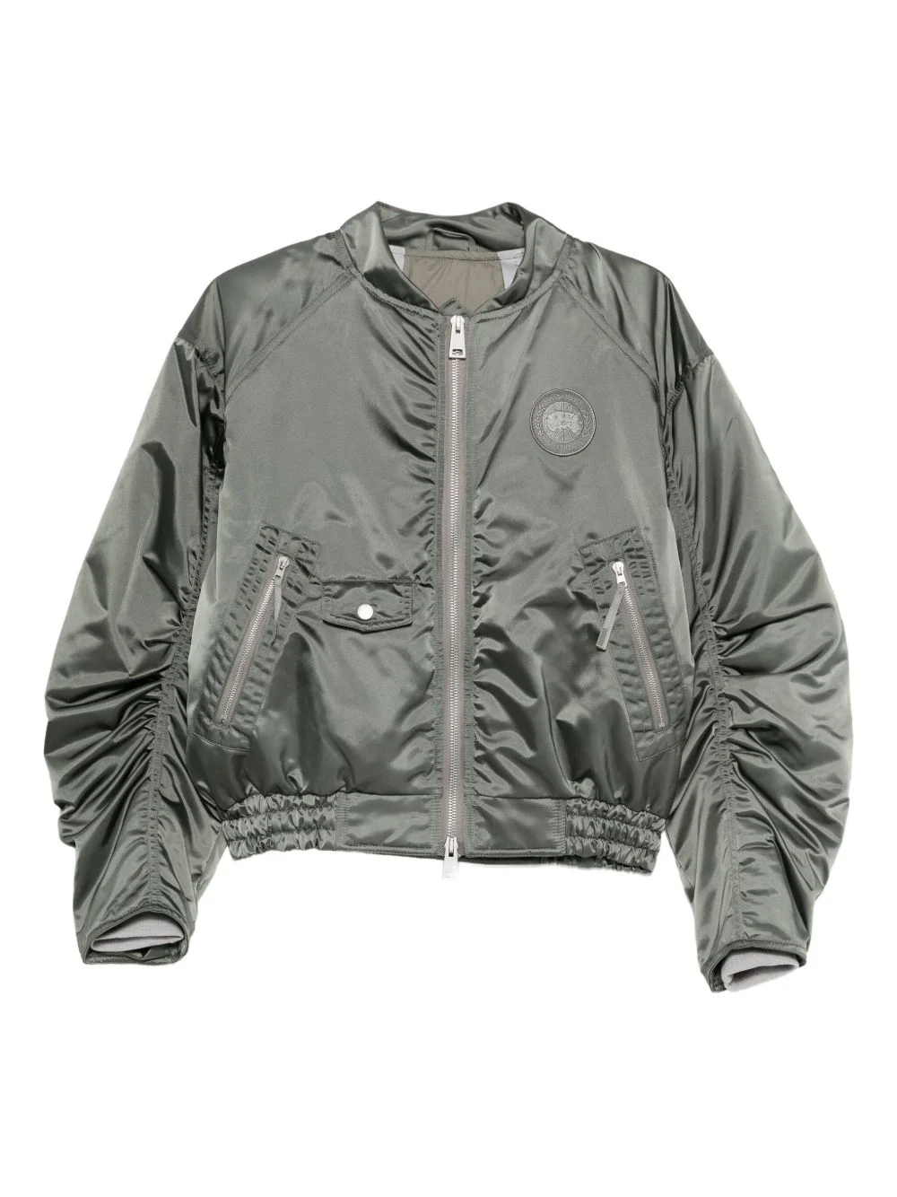 zip-up bomber jacket Highlights - Sage green - Zip fastening - Zip-fastening pockets - Ribbed cuffs - Round neck - Logo patch Imported Composition Fabric 100% SIZE & FIT Model measurements Height 5 ft 10 in(1.78 m) Bust/Chest 31.49 in(80 cm) Hips 37 in(94 cm) Waist 23.62 in(60 cm) Washing instructions Read Manufacturer Guidelines