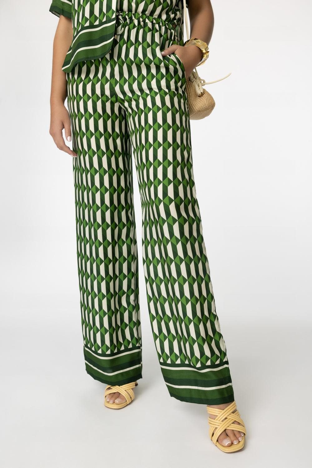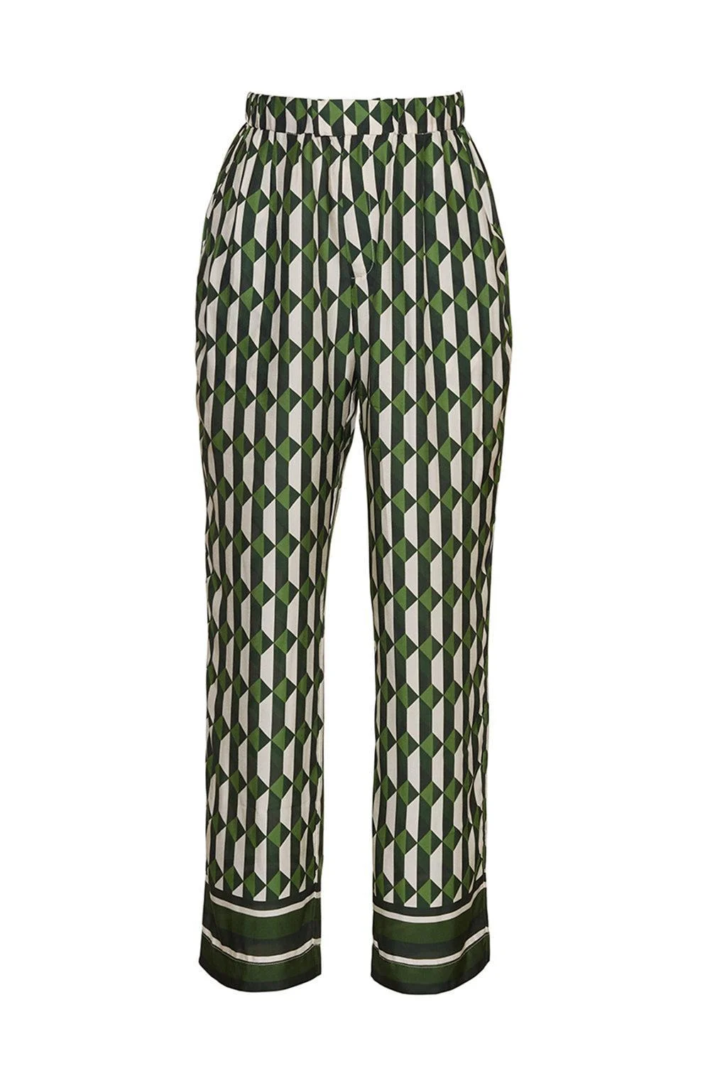 DETAILS AND INSIGHT Cara Cara girona pant in le tile green. 71% Viscose 29% Silk Dry Clean Only Made In China Style 826SV-LTG