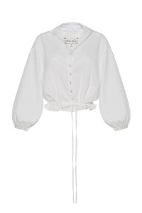 A reimagined white blouse, the Hutton's cropped silhouette and drawstring hem and add an extra dose of glamour to this everyday basic. Designed in crisp cotton poplin it's an easy work to play option. Drawstring hemline, cropped silhouette, covered buttons. Details • 100% Cotton Poplin • Dry Clean Only or Hand Wash Cold • Made in China