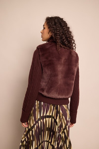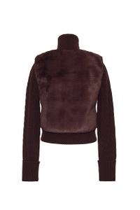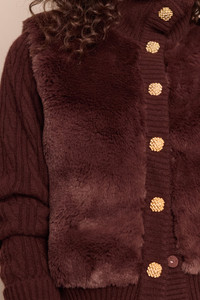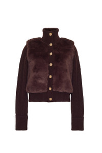• Cable knit and faux fur combo long sleeve jacket • Ribbed trims • Fold back cuff detail at sleeve • Funnel neck • Novelty gold buttons with inside snap down placket • Faux suede inner backing behind fur This garment is special and might stretch over time if hung. To preserve its shape, we recommend taking extra care and folding. Details • 70% Wool 30% Cashmere; Faux Fur Combo • Dry Clean Only or Hand Wash Cold • Made in China