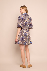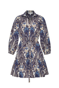 We took our best selling Hutton Dress and designed it into the most effortless, all-season piece. Featuring a tent dress silhouette with self-tie cinch waist and ruffle tier skirt. Team with statement jewels and heels or a chunky knit and sneakers for maximum versatility. Collared neckline. Drawstring waistband. Puffed sleeves. Hem falls above the knee. Unlined. Sized for an easy fit. Placed print. Details • 100% Cotton Poplin • Dry Clean Only or Hand Wash Cold • Made in India