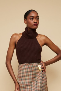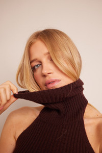 The form-fitting Samson Top is a ribbed knit open back halter with a luxurious, oversized turtleneck. The vertical rib knit stitch creates a figure-flattering silhouette. • 70% Wool, 30% Cashmere • Ribbed knit • Body con fit This garment is special and might stretch over time if hung. To preserve its shape, we recommend taking extra care and folding. Details • 70% Wool, 30% Cashmere • Dry Clean Only or Hand Wash Cold • Made in China
