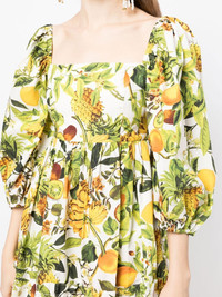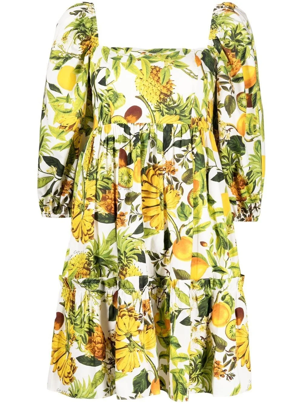 Sip Sip dress Highlights - Light green/multicolour - Cotton - Flared - Elasticated panelling - Fruit print - Square neck - Square open back - Balloon sleeves - Thigh-length Imported Composition Cotton 100% SIZE & FIT Model measurements Height 5 ft 11 in(1.8 m) Bust/Chest 28.34 in(72 cm) Hips 35.43 in(90 cm) Waist 23.62 in(60 cm)