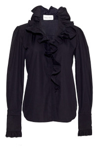 The new shirting capsule was created to add effortless glamour to casual looks. The Anne is our more elegant top, featuring a ruffle trim collared neckline, long sleeves and button cuffs and front. The relaxed fix, yoked back and shirttail hem effortlessly elevates any pair of jeans or skirt. Details • 100% Cotton Poplin • Dry Clean Only or Hand Wash Cold • Made in Peru