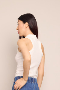 • Collared sleeveless fit and flare fitted top • Racerback • Slick knit • Novelty pique Details • 83% Viscose 17% Poly + Spandex • Dry Clean Only or Hand Wash Cold • Made in China