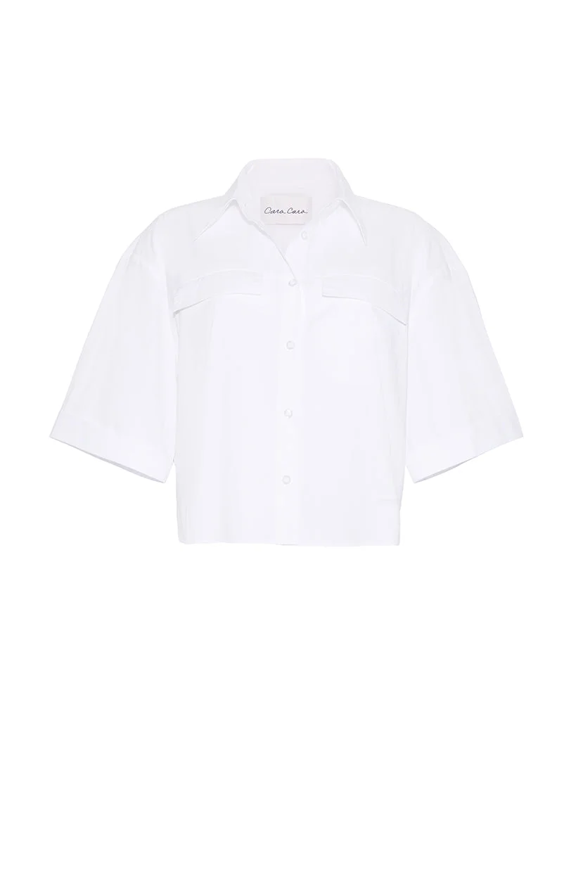 • Easy button down camp shirt with pockets • Designed for a boxy look • Center front placket opening • High-low elliptical hem • Cuffed short sleeves • Unlined • Pocket flaps at chest with hidden, functional pocket bags • Back yoke has inverted box pleat detail Details • 100% Cotton Poplin • Dry Clean Only or Hand Wash Cold • Made in China
