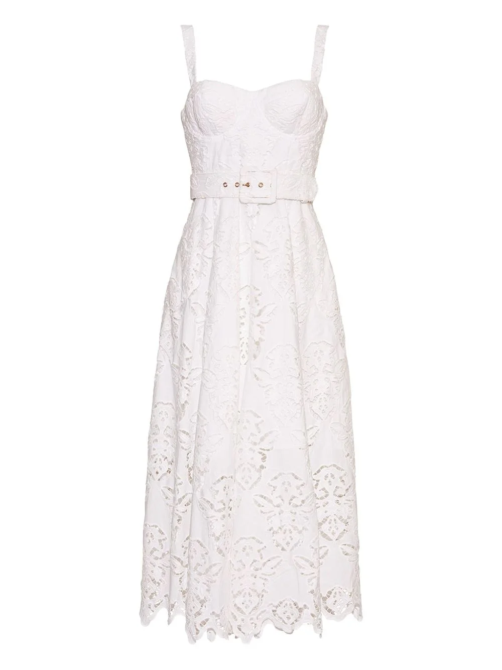 Calypso belted midi dress Highlights - White - Sweetheart neckline - Self-tie belt - A-line skirt Imported Composition Cotton 100% Washing instructions Read Manufacturer Guidelines