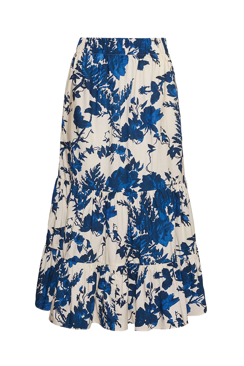 The Chase Skirt has a tiered A-line cut made from breathable cotton poplin with an elastic waistband so you can style it high or low on the hips. Pull on. Double tiered midi skirt with elastic waistband. Allover print. Details • 100% Cotton Poplin • Dry Clean Only or Hand Wash Cold • Made in China