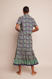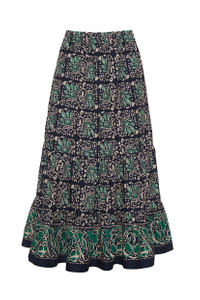 The Chase Skirt has a tiered A-line cut made from breathable cotton poplin with an elastic waistband so you can style it high or low on the hips. Pull on. Double tiered midi skirt with elastic waistband. Placed print at hem. Details • 100% Cotton Poplin • Dry Clean Only or Hand Wash Cold • Made in China