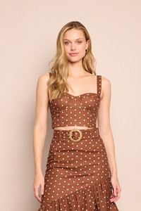 The Claudine Top was designed as an easy compliment to denim and matching printed looks. An extremely flattering and feminine corset crop top, the Claudine is designed in linen and pairs effortlessly with the matching Josephine Pant. The elastic at the back of the straps and fitted bodice allow for a comfortable fit and no-fuss pretty detail. Smocked back and elastic in back of straps. Boning. Metal underwire for support. Bodice and cups fully lined. Bra cups. Self covered zipper. Sweetheart neckline. Allover print. Details • 100% Linen; 100% Cotton Voile Lining • Dry Clean Only or Hand Wash Cold • Made in China
