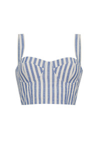 The Claudine Top was designed as an easy compliment to denim and matching printed looks. An extremely flattering and feminine corset crop top, the Claudine is designed in linen and pairs effortlessly with the matching Terra Skirt. The elastic at the back of the straps and fitted bodice allow for a comfortable fit and no-fuss pretty detail. Smocked back and elastic in back of straps. Boning. Metal underwire for support. Bodice and cups fully lined. Bra cups. Self covered zipper. Sweetheart neckline. Details • 50% Viscose, 36% Cotton, 14% Polyamide • Dry Clean Only or Hand Wash Cold • Made in China; Fabric from Italy