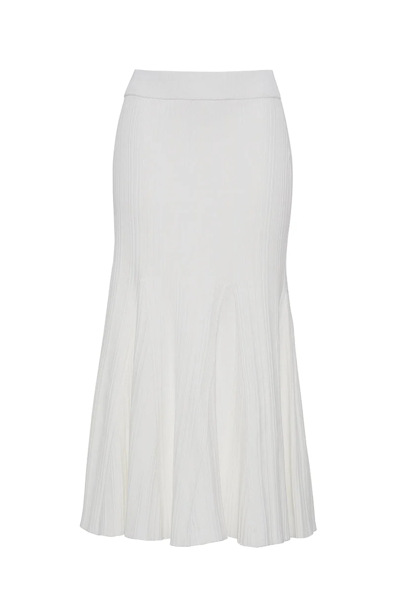 • Elastic waist midi length variegated rib knit trumpet skirt • Fitted and godets at the bottom Details • 72% Viscose 27% Nylon 1% Spandex • Dry Clean Only or Hand Wash Cold • Made in China