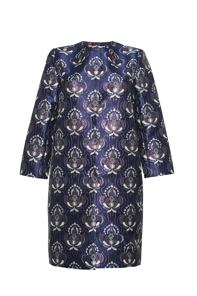 • Vintage jacquard short coat with fabric covered snaps at inner opening at center front • Crew neckline with shoulder pads and darts at back of neck • Functional side seam pockets • Placed jacquard print This fabric is very special and should be treated with extra care to preserve its beauty. To prevent snagging, we recommend using a garment cover and to avoid storing next to items that may cause damages such as sequins, rhinestones, or embroidery. Alternatively, consider hanging on a padded hanger. Details • 95% Poly 5% Metallic; 100% Acetate Lining • Dry Clean Only or Hand Wash Cold • Made in China